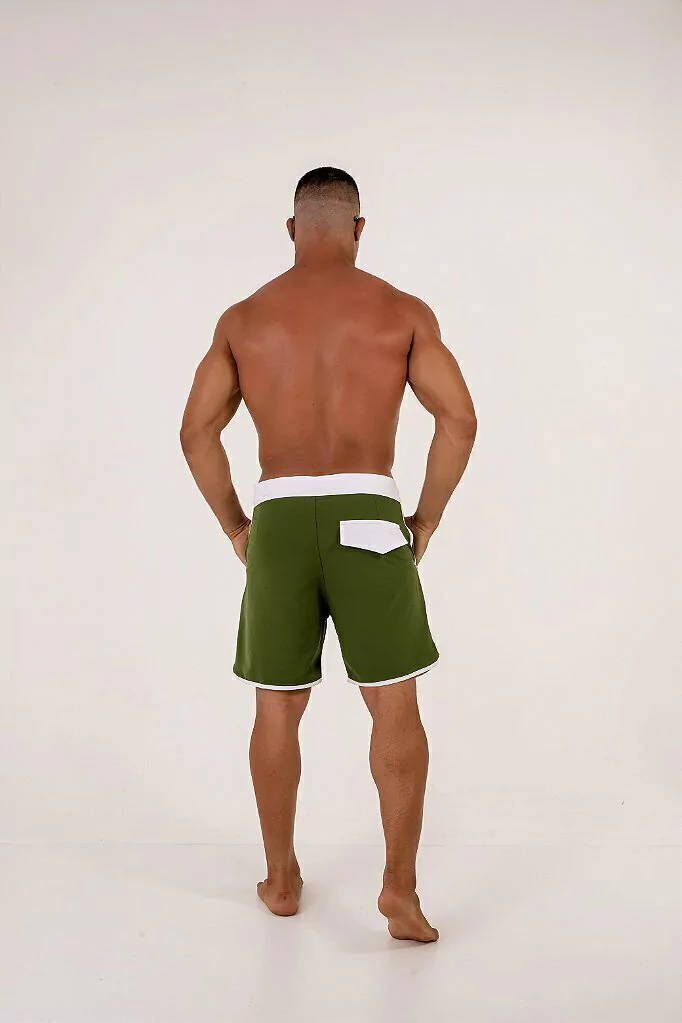 Experimente o Boardshort Retrô Verde Militar da RVSO, a escolha perfeita para quem busca estilo e desempenho em cada movimento. Confeccionado em um material super leve com tecnologia stretch, este boardshort proporciona liberdade total durante seus treinos ou momentos de lazer.